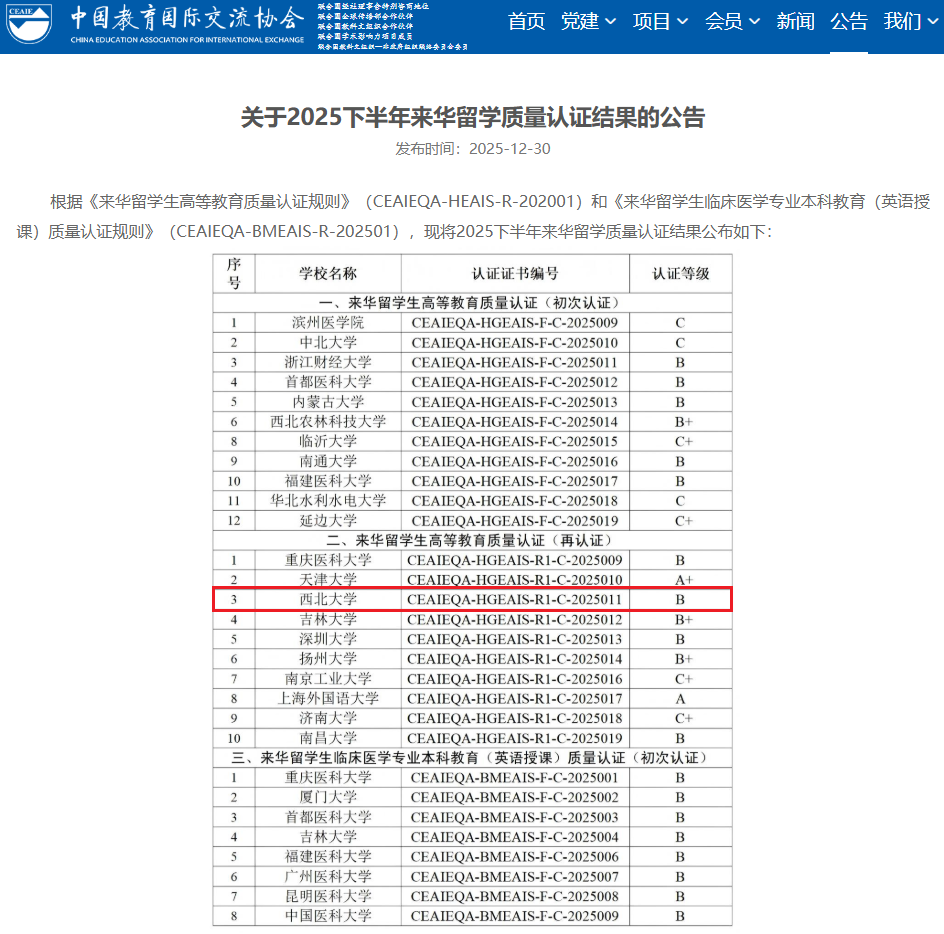 我校顺利通过来华留学生高等教育质量再认证