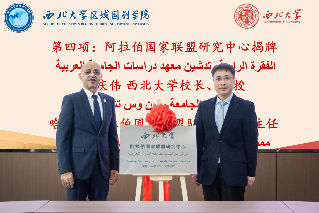 哈菲兹表示,非常荣幸在阿盟成立80周年之际再次到访西北大学并受聘学校荣誉教授。他说,西北大学区域国别学院将学术研究与中阿重大现实需求相结合,对阿拉伯国家历史和文明的研究搭建起了中阿现代学术丝绸之路,对中阿现实关系的政策建议为中阿交流合作作出了卓越贡献。期待阿盟驻华代表处与西北大学加强合作,共同为推动中阿人民相知相亲、促进“一带一路”高质量发展注入深厚而持久的学术文化动力。