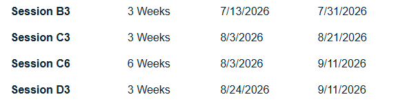 2.课程时间:一般为6-10周课程,提供800+课程。2026年暑期共开设时间段如下,可自行选择,具体如下图: