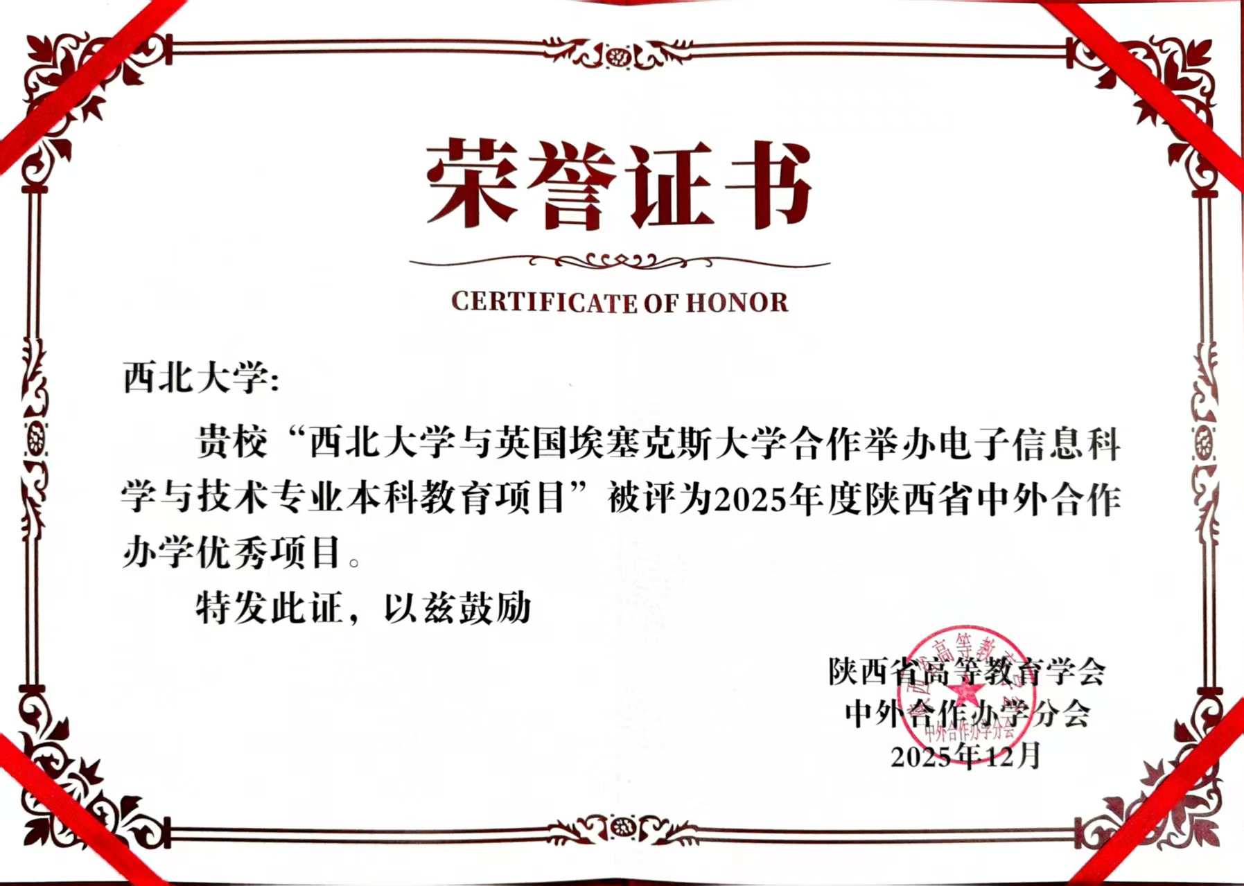 会议对2025年度优秀机构(项目)、管理人员进行了表彰。我校与英国埃塞克斯大学大学合作举办电子信息科学与技术专业本科教育项目获评2025年度陕西省中外合作办学优秀项目,范代娣代表学校领奖。我校萨兰托文化遗产与艺术学院团支部(直属)书记刘扬、合作办学秘书刘淑青,计算机学院(软件学院)合作办学秘书王思捷,电子信息学院(人工智能学院)教师齐晓斐获评“2025年度陕西省中外合作办学优秀管理人员”荣誉称号。